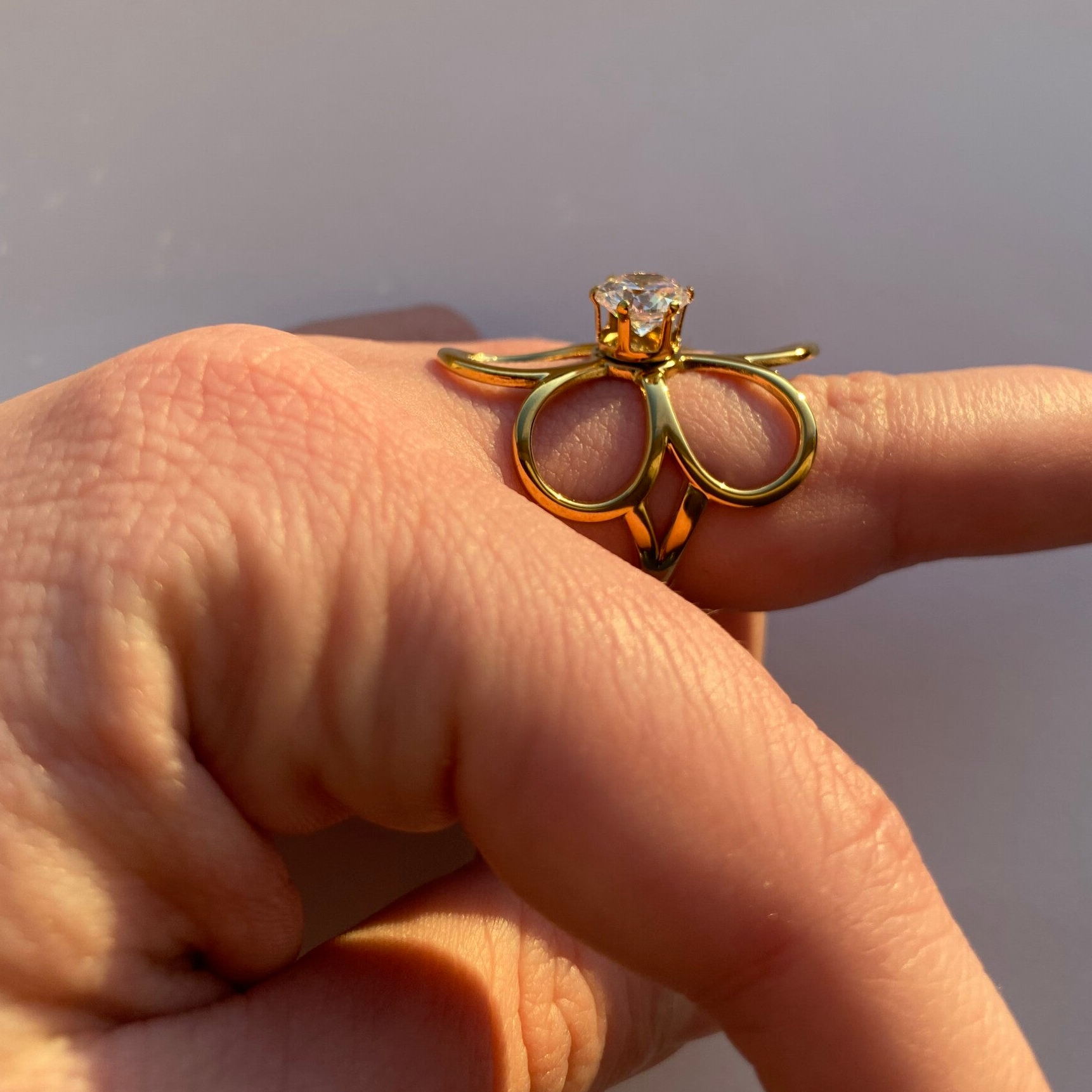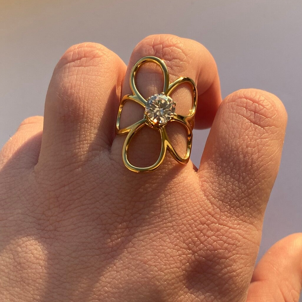 This Bloom Ring is an elegant and playful piece of jewelry with a floral design and a small sparkling stone in the center. The ring is made of high-quality stainless steel, which means it won’t tarnish and is nickel-free perfect for those with sensitive skin.