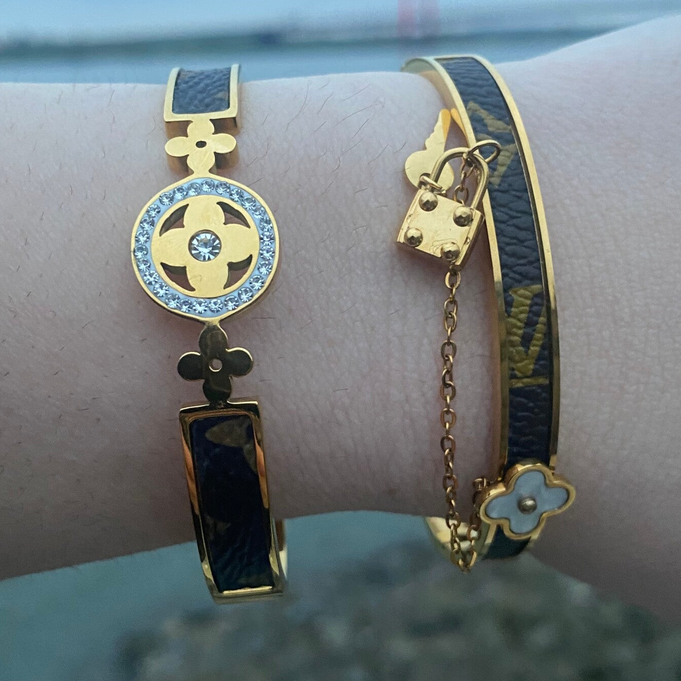 Stylish bracelets with an elegant gold-tone finish and clover details. Made from stainless steel, water-resistant and non-tarnish perfect for everyday wear or special occasions.